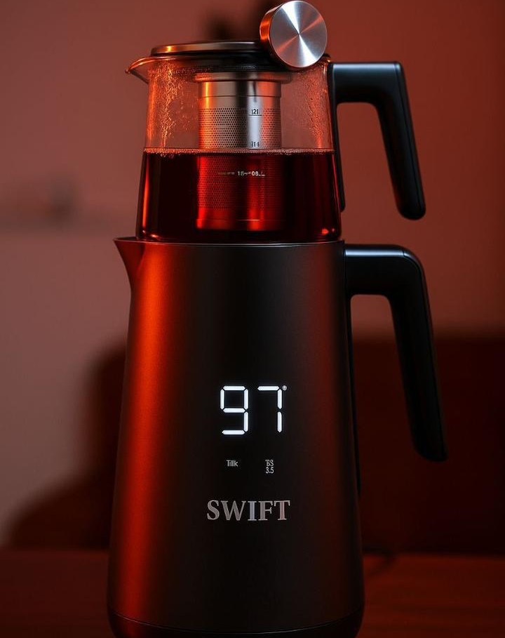 1850-2200 وات کتری 1.8 لیتری قوری پیرکس 1.2 لیتری با صفحه گرمایش شیشه مقاوم در برابر دمای بالا • بدنه از استیل ضدزنگ • طراحی لوکس و تکنولوژی روز ظرفیت مناسب برای استفاده روزمره طراحی زیبا و مدرن سیستم گرم نگهدار ✅ با ضمانت 12 ماهه